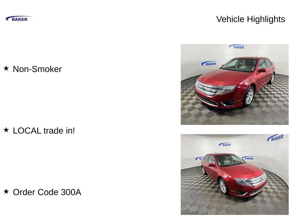 2010 Fusion SE, Red Ext., gray interior. Only 89000 real mileage, no accidents, 2nd. owner. 4 cylinder, tires in great shape, I've been very pleased with this vehicle. I've taken 2 long trips only. Car used only for in town driving since retired Car is in great shape.